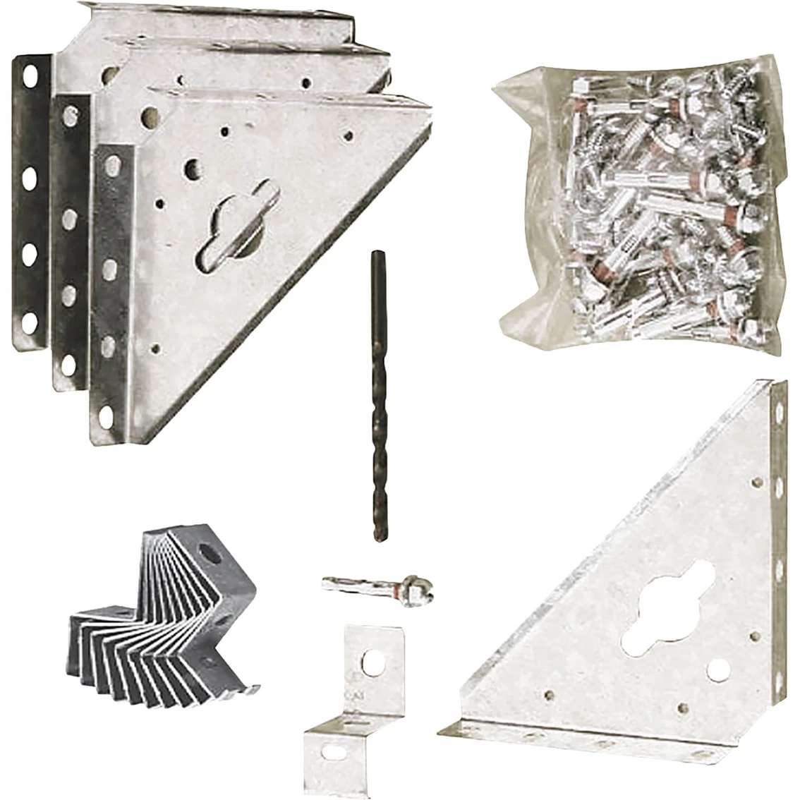 For use with all the sheds with exception of the Homestead 10 ft. x 8 ft. storage shed (item B304Z). Includes four steel corner gussets and perimeter clips, plus a.25 in. masonry drill bit. Easy to install. Model: AK100.