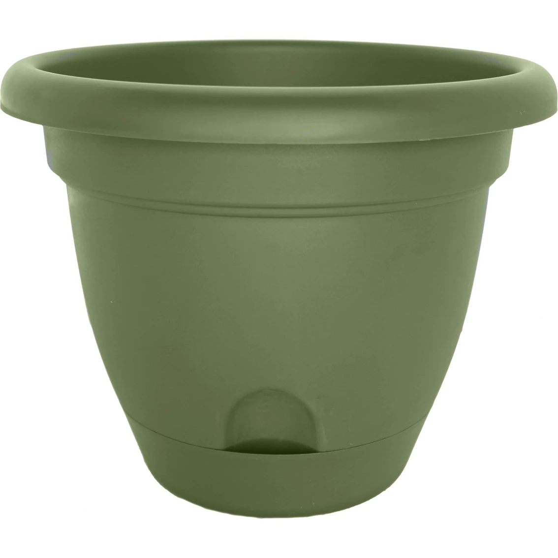 The 10 in. Lucca Planter from Bloem has an attached redesigned saucer and self-watering feature. Rolled rim. Model: 100541834.