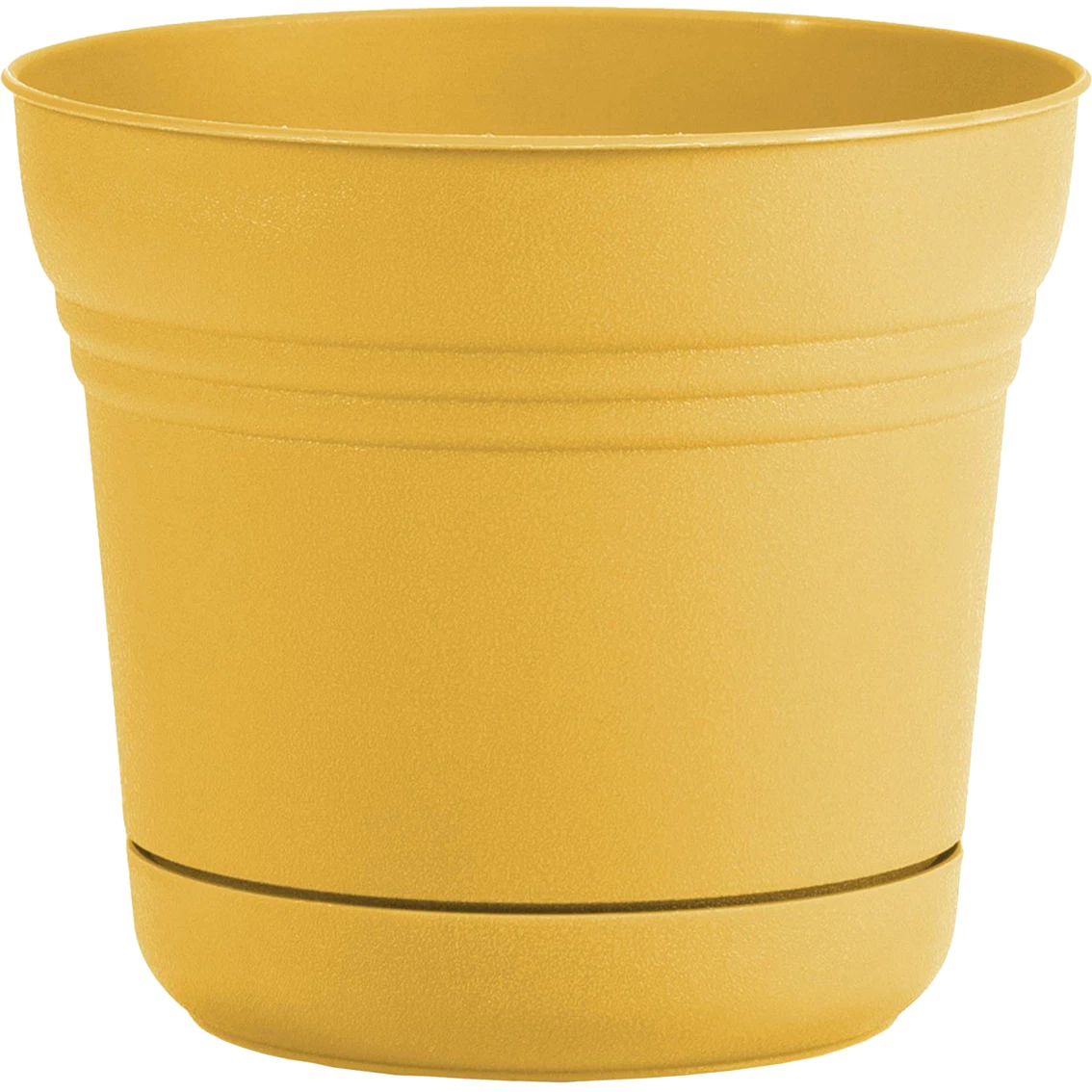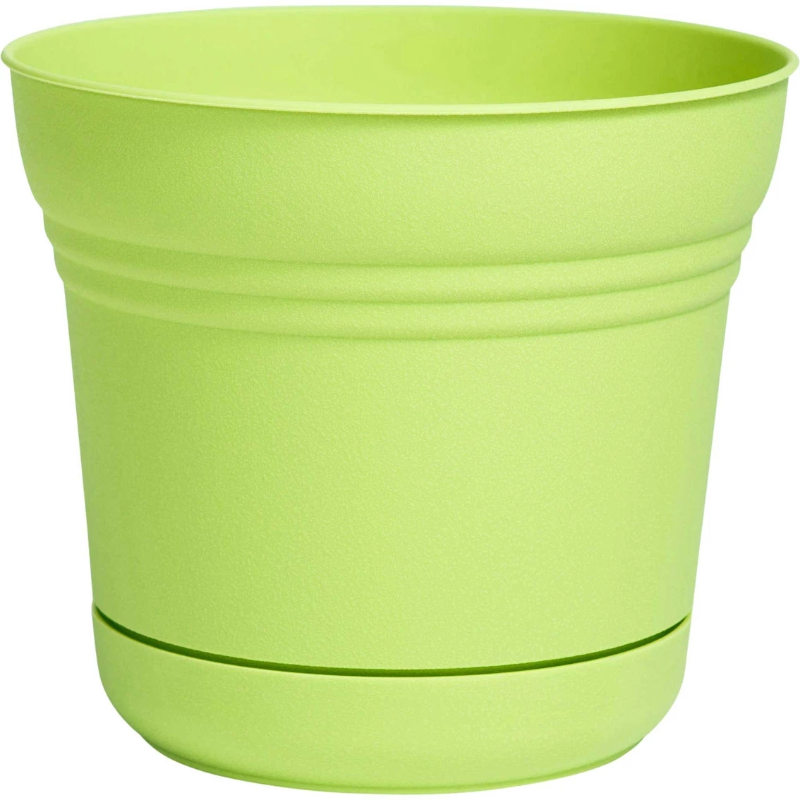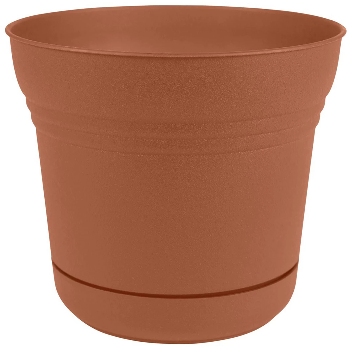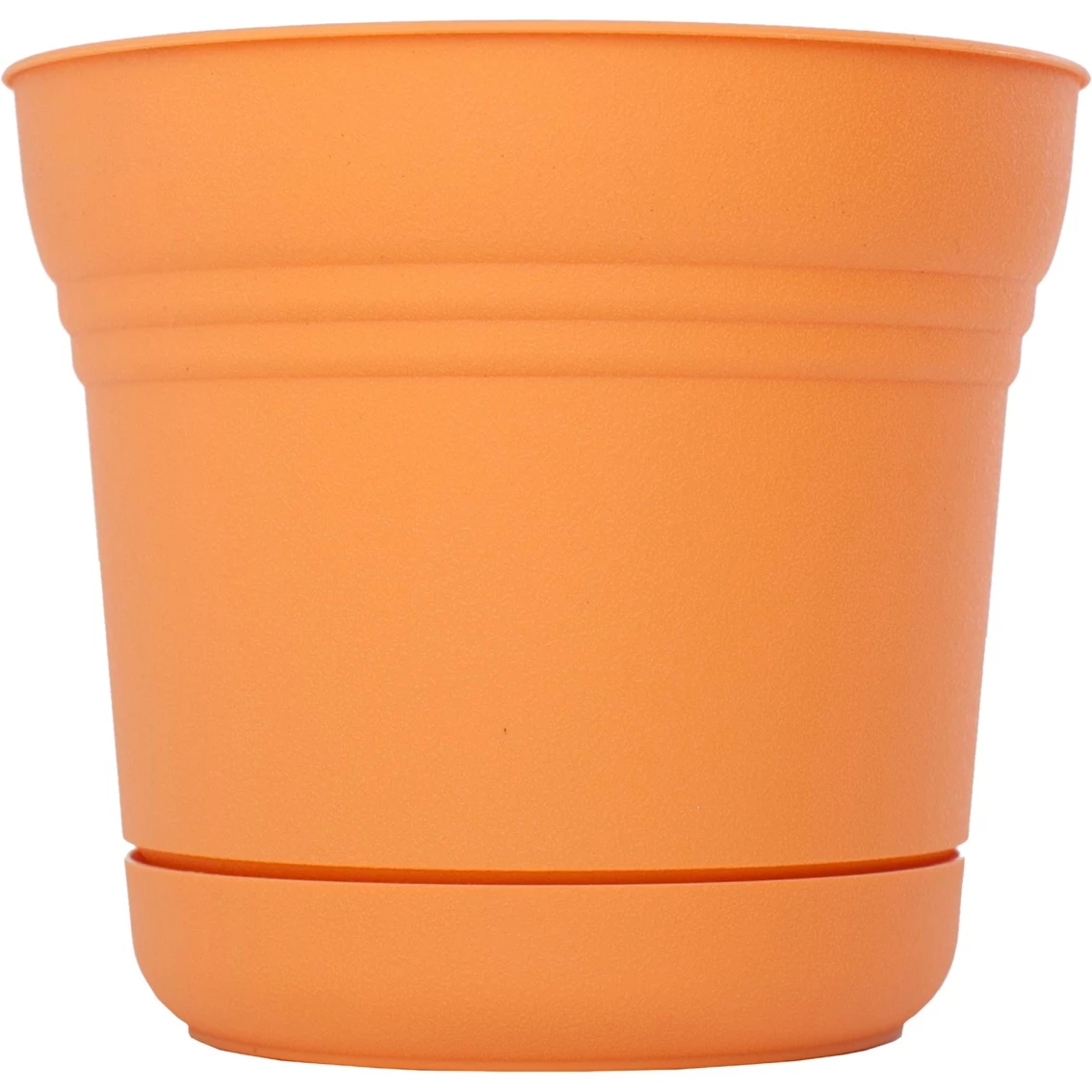 Textured over the entire service, this 10 in. Saturn Planter from Bloem is excellent for use indoors or outdoors. An attached saucer helps catch draining water. Model: SO1060.