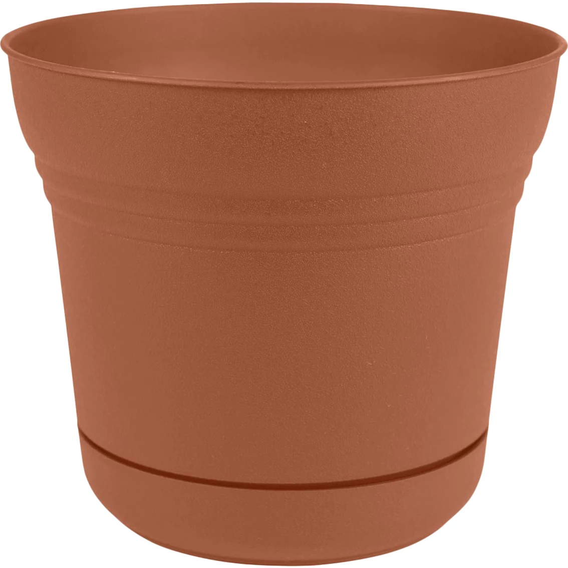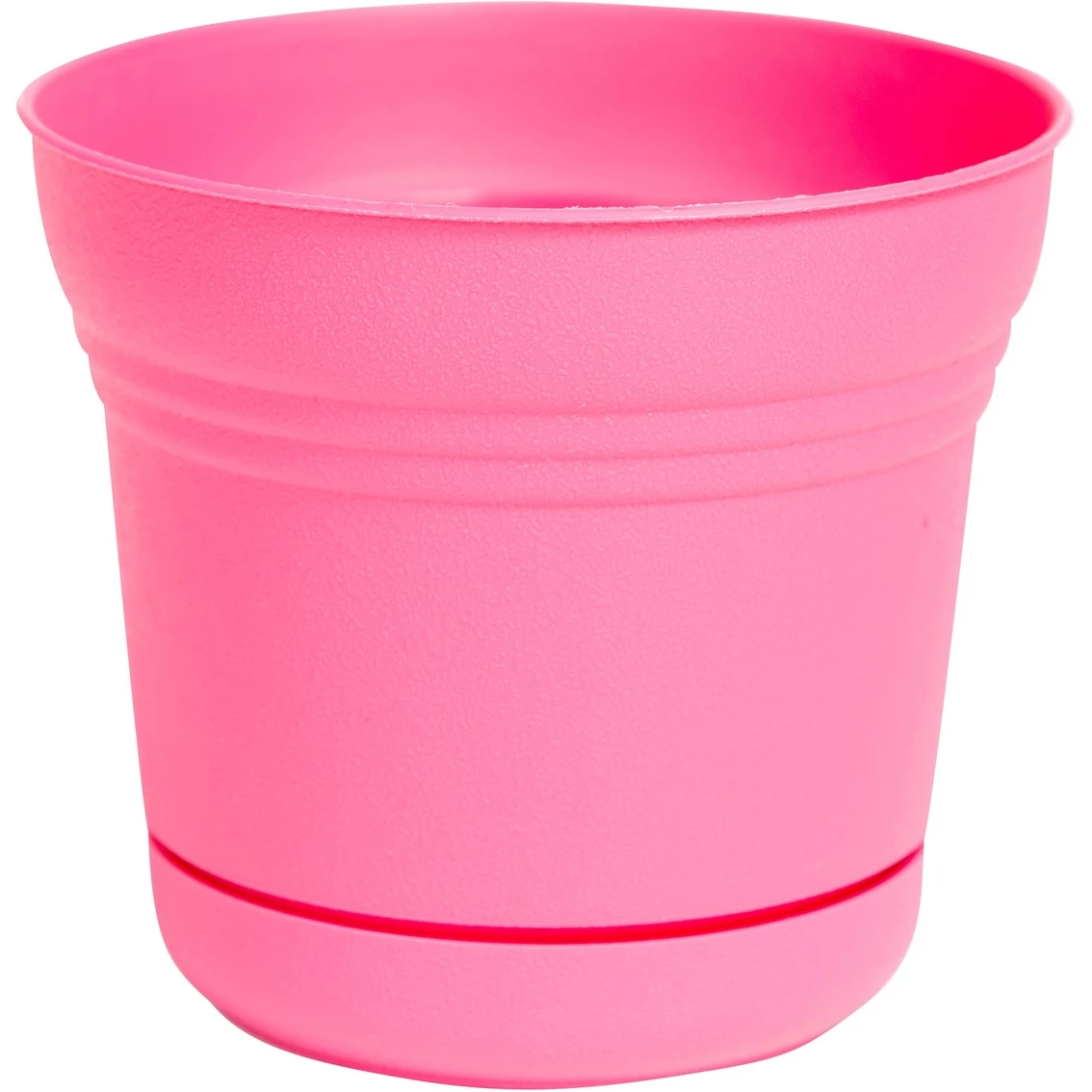Textured over the entire service, this 5 in. Saturn Planter from Bloem is excellent for use indoors or outdoors. An attached saucer helps catch draining water.