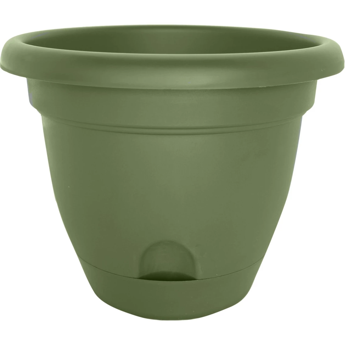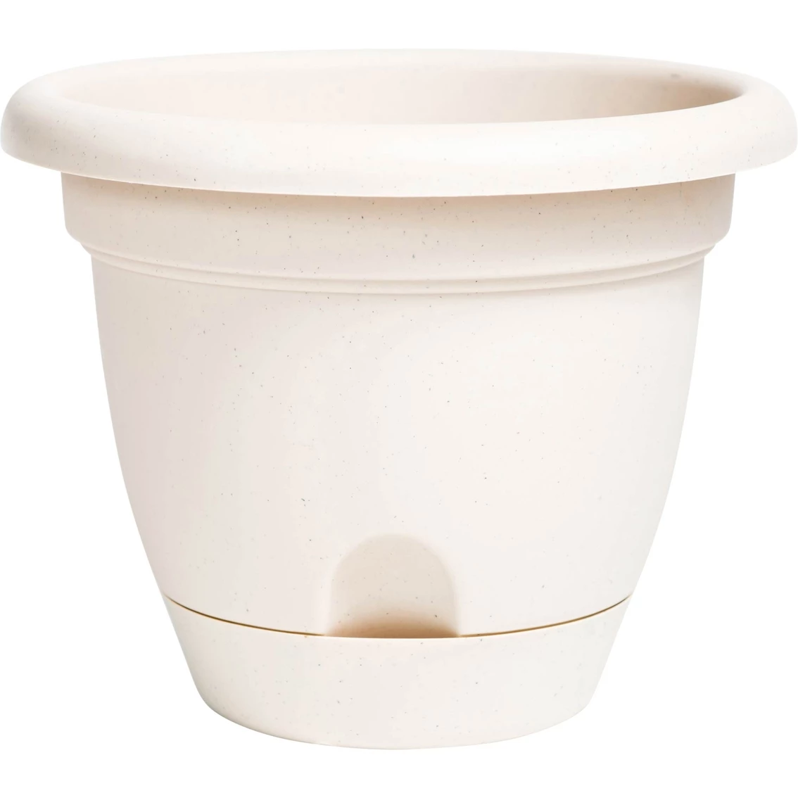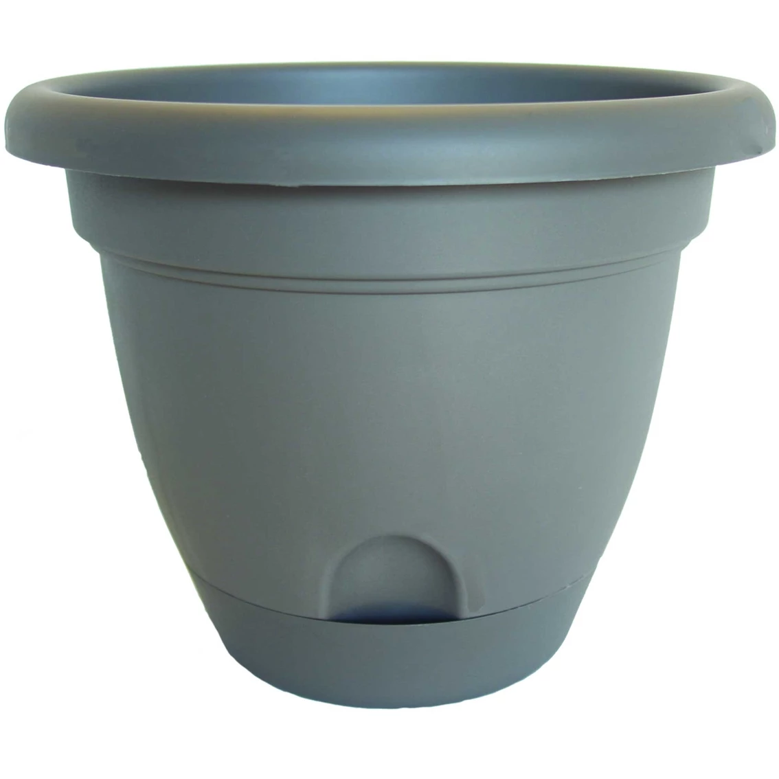 The 8 in. Lucca Planter from Bloem has an attached redesigned saucer and self-watering feature. Rolled rim. Model: 100541832.