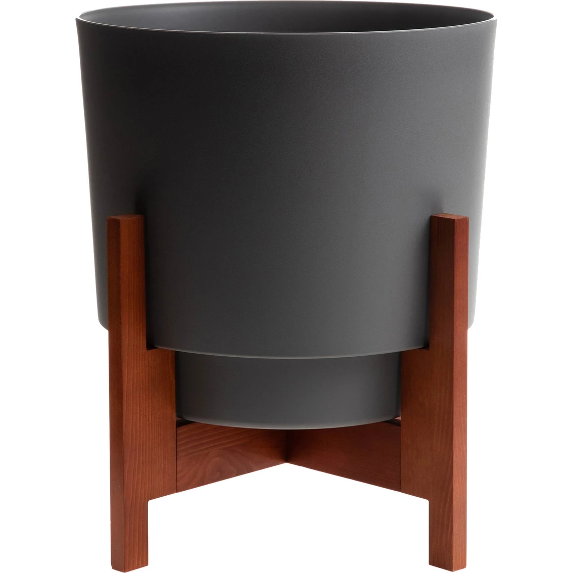 The sleek, graceful shape of the Hopson Planter from Bloem is a stylish addition to any modern home. This 15 x 14 in. planter includes metal stand.