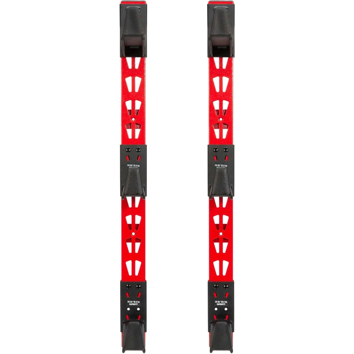 To protect costly items like snowboards and skis the arms feature a rubberized anti-marring coating to allow them to be stored safely without damage. Flat, raised tabs on the ends provide added security when holding round stock, tubing, and pipes and prevent them from rolling off.