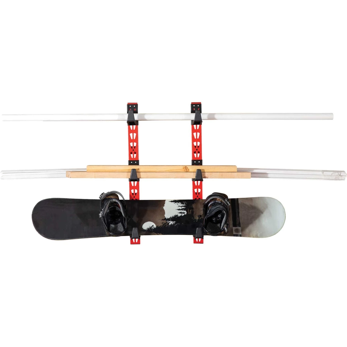 Safely store pipes, rods, skis, snowboards, wood dowels or lumber, and other long materials and stock out of the way yet within easy reach with this convenient wall-mountable cantilever storage rack kit from Craftsman.