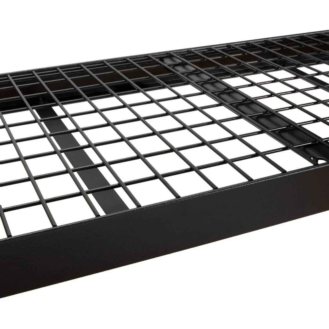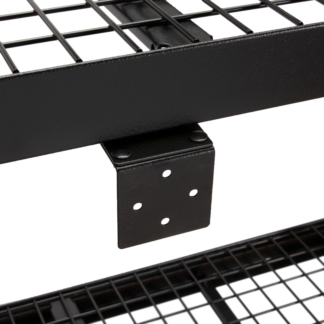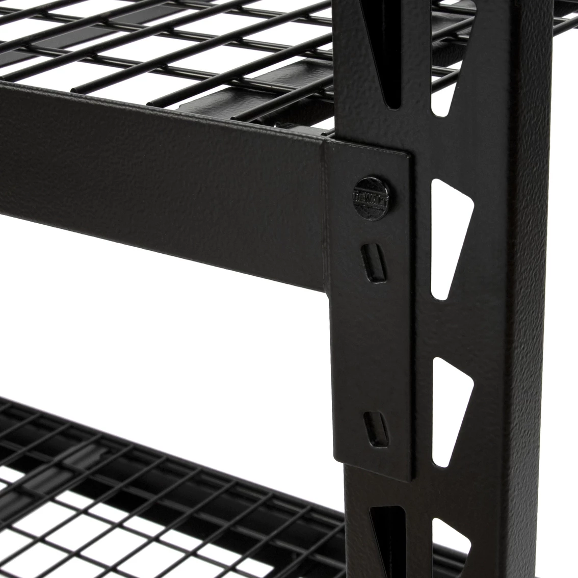 The DeWalt DXST4500BLK-W 4 ft. Tall, 3-Shelf Steel Wire Deck Industrial Rack was designed and engineered to provide heavy-duty, professional level storage. This rack features innovative details that aren’t typically found on industrial racks, such as dense wire grids that prevent items from falling through, safety straps with weld nuts for ease of assembly, and top caps that protect both you and your items from possible damage. The three industrial metal wire grids can each support an evenly distributed 1,500 lb. for a total of 4,500 lb. The uprights, crossbeams and support straps are all made from powder-coated steel and are designed so that once assembled, each shelf has two types of support straps in addition to the crossbeams to prevent them from buckling under pressure. The shelves are adjustable in 2.35-in. increments and the locking pins ensure that each shelf is properly installed. Glass-filled nylon feet on the uprights protect the powder coat from damage when repositioning the rack in addition to providing a second layer of protection against unwanted moisture and liquid spills while also protecting finished flooring from damage. Additional safety features include locking grid clips to secure the wire grids into place and a wall mount bracket so you can secure your rack in place to prevent any accidental tipping. Each rack also includes two stacking plates so you can easily join multiple racks together to create a complete storage or workspace solution customized for your needs. For easy assembly, the rack hardware kit includes a wrench, hex key and hex driver bit and two of the four uprights come with pre-installed horizontal and diagonal support beams making getting started fast and stress-free. Model: 41659.