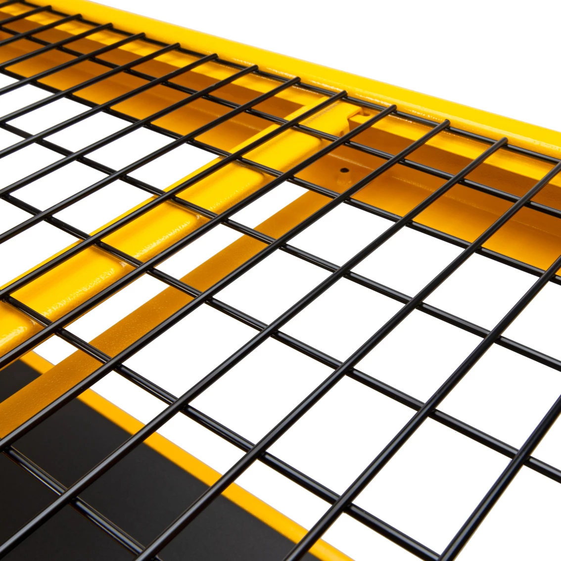 The DeWalt DXST10000 6 ft. Tall, 4-Shelf Industrial Rack was designed and engineered to provide heavy-duty, professional level storage. This rack features innovative details that aren’t typically found on industrial racks such as dense wire grids that prevent items from falling through, safety straps with weld nuts for ease of assembly, and top caps that protect both you and your items from possible damage. The three industrial metal wire grid and one black laminate wood composite deck can each support an evenly distributed 2,500 lb. for a total of 10,000 lb. The uprights, crossbeams and support straps are all made from powder-coated steel and are designed so that once assembled, each shelf has two types of support straps in addition to the crossbeams to prevent them from buckling under pressure. The shelves are adjustable in 3-in. increments and the locking pins ensure that each shelf is properly installed. Glass-filled nylon feet on the uprights protect the powder coat from damage when repositioning the rack in addition to providing a second layer of protection against unwanted moisture and liquid spills and protecting finished flooring from damage. Additional safety features include locking grid clips to secure the wire grids into place and a wall mount bracket so you can secure your rack in place to prevent any accidental tipping. For easy assembly, the rack hardware kit includes a wrench, hex key and hex driver bit and two of the four uprights come with pre-installed horizontal and diagonal support beams making getting started fast and stress-free. Model: 56829.