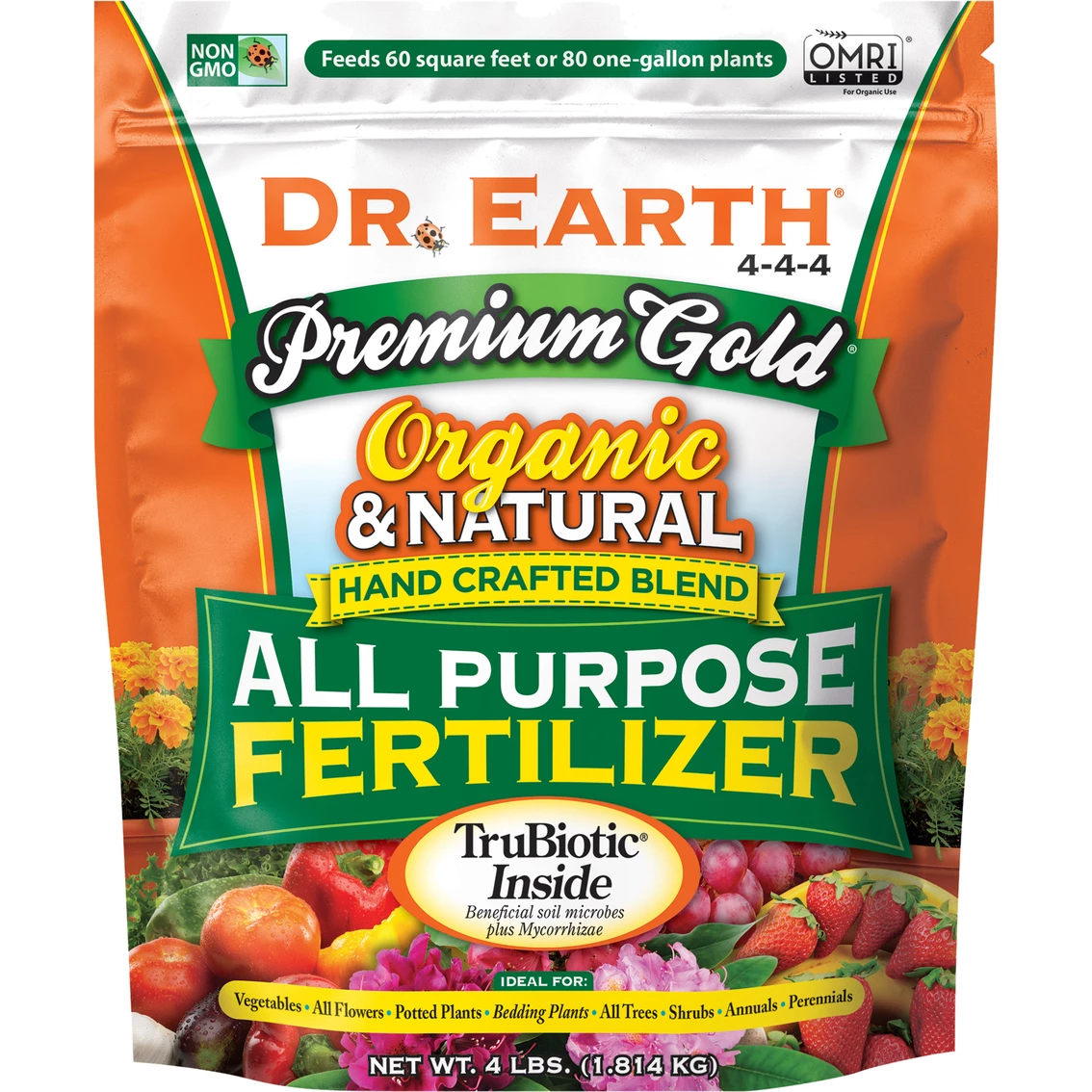 Great for ground cover and hanging baskets, Dr. Earth Pure Gold All-Purpose Plant Food is formulated to feed plants anytime of the year. Pure Gold is a true pelletized and homogeneous organic all-purpose fertilizer that produces remarkable results because nutrients are released quickly yet continue to feed for several months. This ultra-premium scientific formula provides optimum levels of primary essential plant nutrients, including micro-nutrients and multi-minerals. Feeds for several months and is great for every plant in the garden. This is Dr. Earth’s easiest to use fertilizer and can be applied to the soil without having to be worked in. 4 lb.