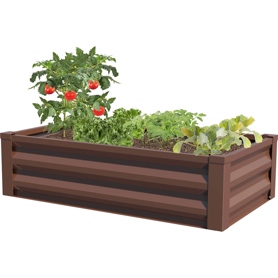 This Powder-Coated Metal Raised Garden Bed Planter from Greenes Fence Co. allows you to easily build and yield a successful garden without assembly tools. The sidewalls slide into the corner pieces and lock into place using a keyhole locking mechanism. The garden bed is made out of pre-galvanized powder-coated steel making it rust resistant and allowing it to last for many years to come. Set the open bottomed frame on any level outdoor space, add soil and plants or seeds, and begin growing the garden of your dreams.