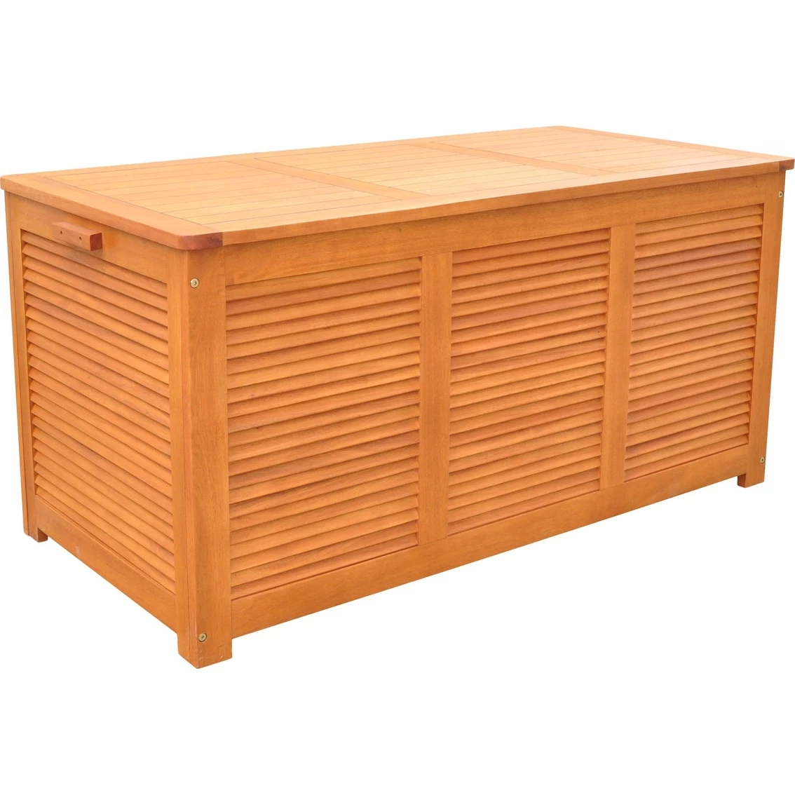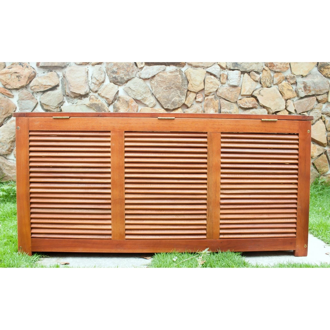 This durable and functional outdoor storage box is made of Eucalyptus Hardwood, water-proof silicone sealed top with hardware intended for outdoor use. Protects patio cushions from fading in the sun or soaking in the rain and is ideal for clutter-free pool side or storing lawn games and gardening supplies.