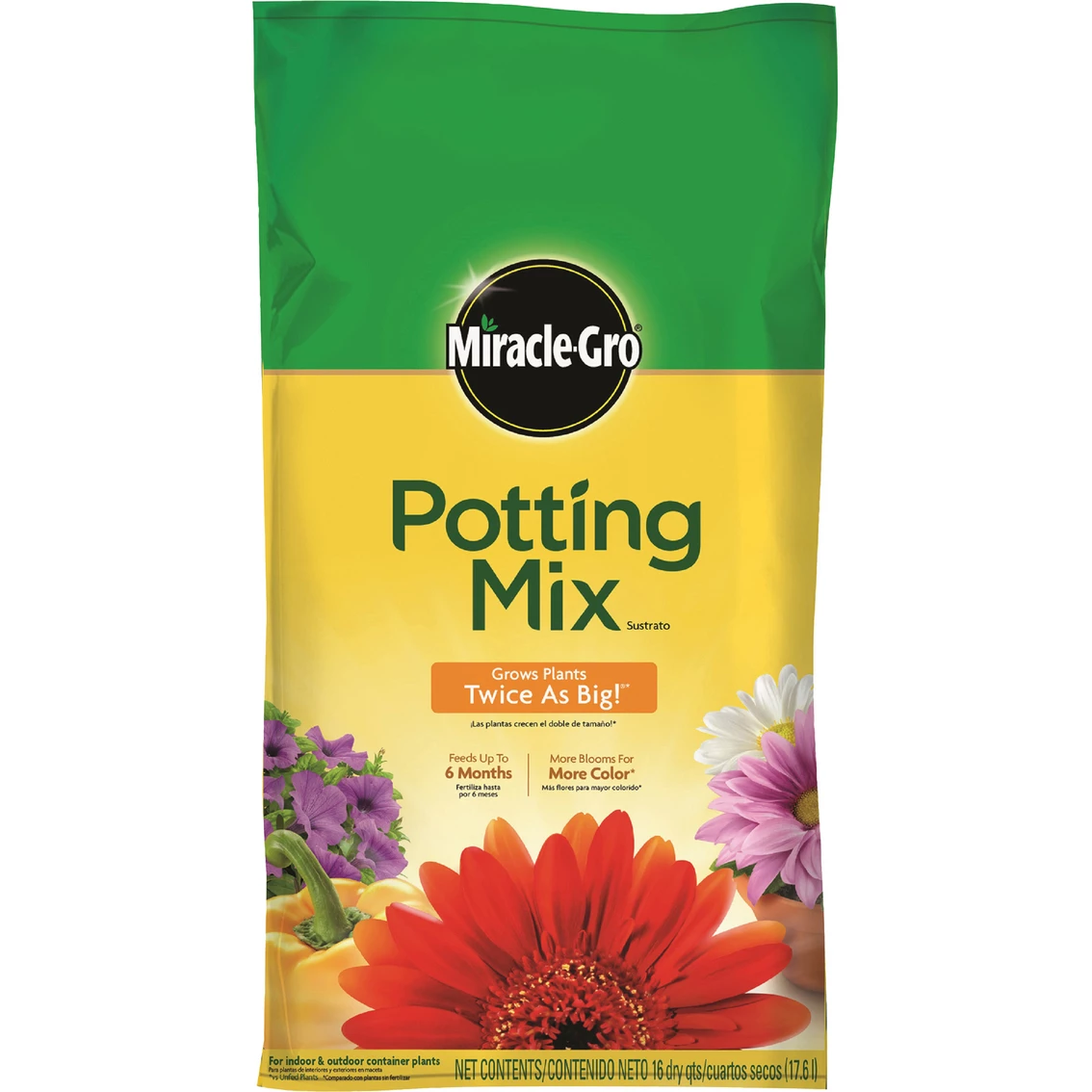 Your plants want to show off. Give indoor and outdoor container plants the right ingredients to grow bigger and more beautiful with Miracle-Gro Potting Mix. This specially formulated mix feeds for up to 6 months for more blooms and more color. Use with indoor and outdoor container plants. 16 Qt.