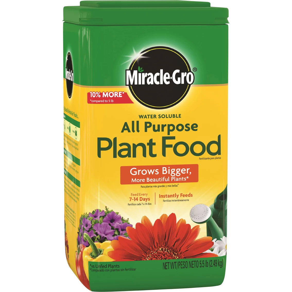 Miracle-Gro Water Soluble All Purpose Plant Food is full of essential nutrients. It instantly feeds to grow bigger, more beautiful plants vs. unfed plants. Miracle-Gro Water Soluble All Purpose Plant Food is for all flowers, vegetables, trees, shrubs and houseplants. 5.5 lb.