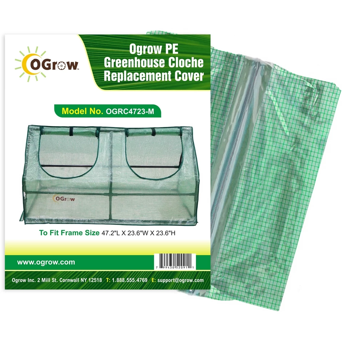 Don’t let the damage of your greenhouse cover mean that you have to buy a whole new greenhouse. Ogrow Heavy duty reinforced green polyethylene replacement cover will enable you to continue your plantings in no time! UV protected cover with zips for easy access and ventilation. Complete with Hook and Loop connection for greater stability when attached to wall. Fits Ogrow PE Cloche Greenhouse or Greenhouse frame size measuring 47.2 in. L X 23.6 in. W X 23.6 in. H. Model: OGRC4723-M