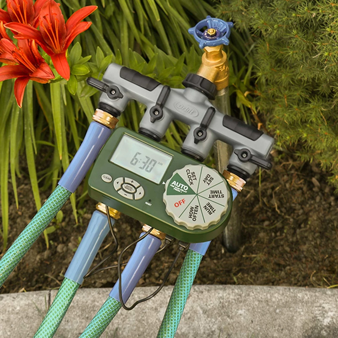 Schedule when and how your lawn gets watered. Each outlet is individually programmable so you can target specific areas of your yard.