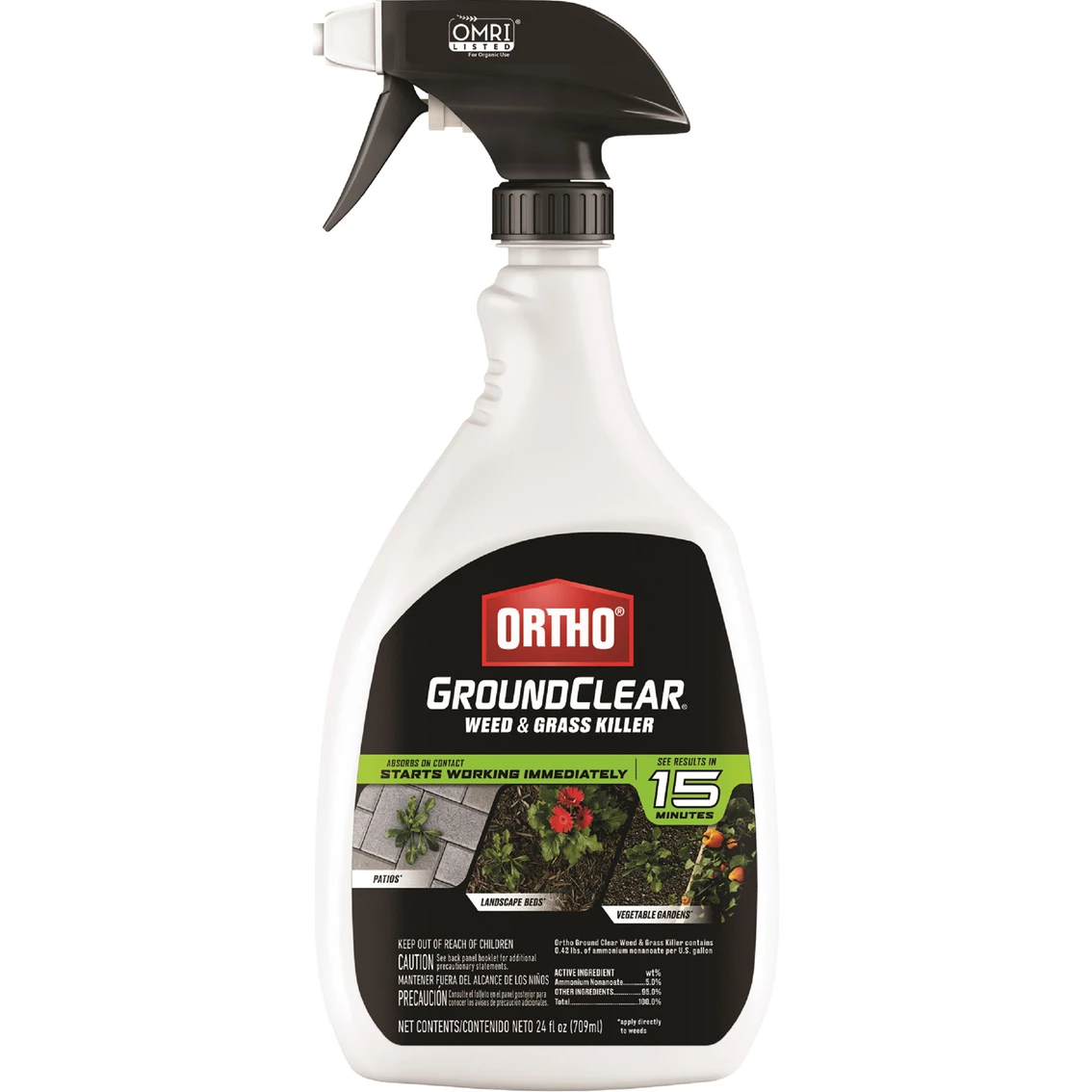 Get results quickly! Ready-to-use Ground Clear Weed and Grass Killer from Ortho works fast to kill weeds and grasses on patios and landscape beds. Location exclusions may apply. Trigger bottle. OMRI Listed. 24 oz.