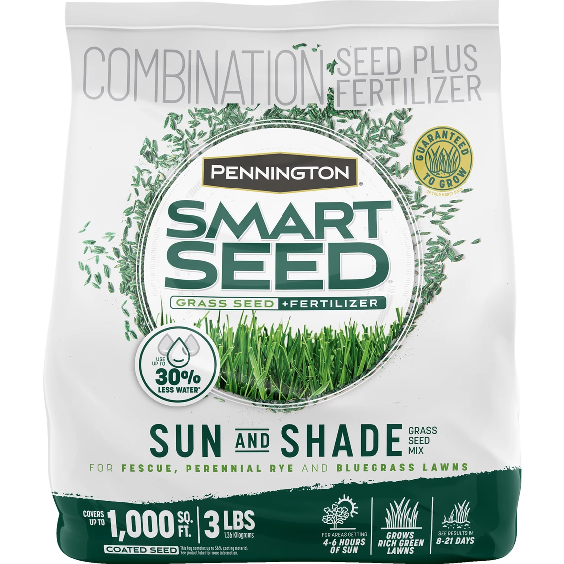 Top selling Pennington Smart Seed Sun and Shade Mix for fescue, perennial rye and bluegrass grows rich green lawns and saves up to 30% water year after year vs. ordinary grass seed. Covers up to 1,000 sq. ft. 3 lb.