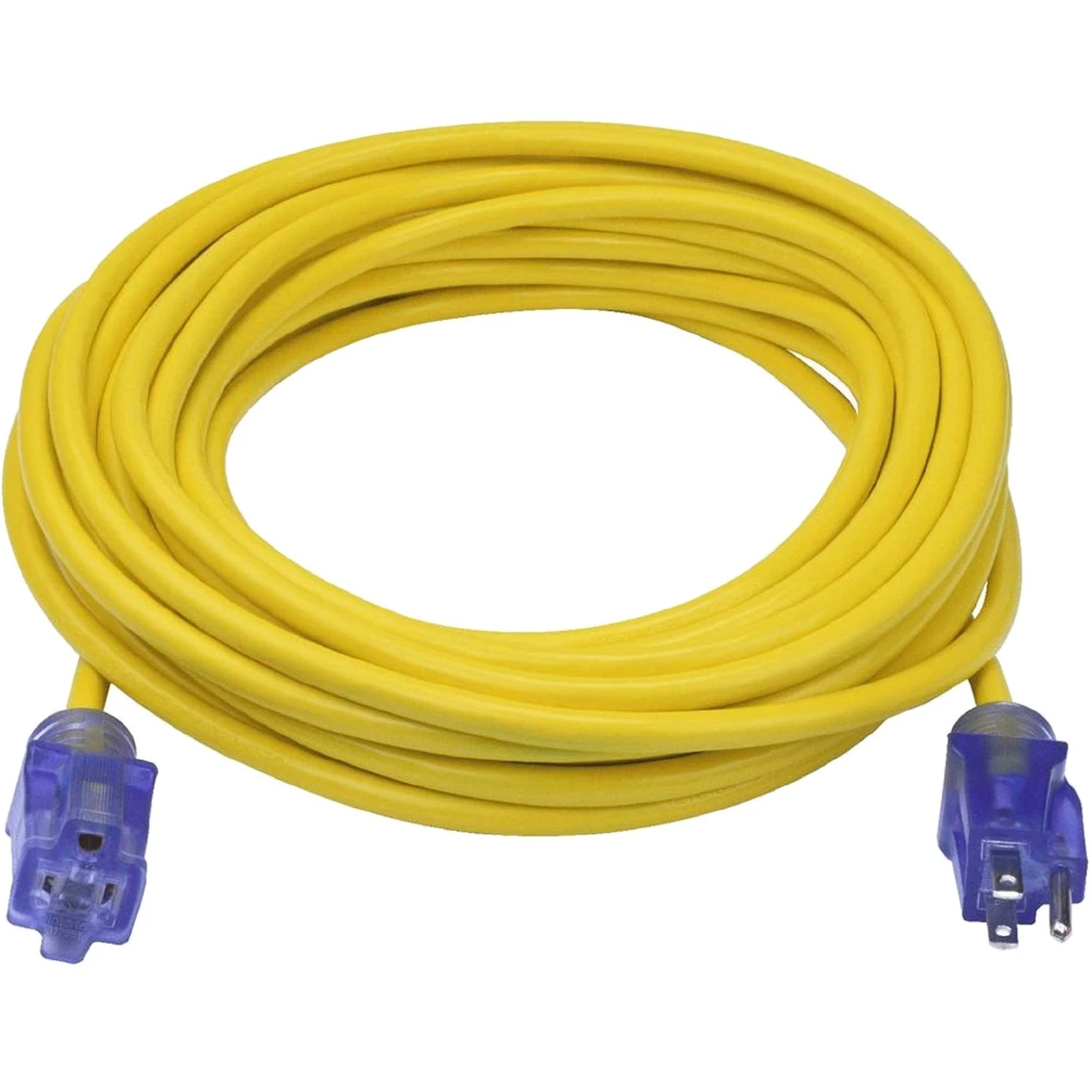 50 ft. 14/3 SJTW Jobsite Outdoor Extension Cord with Locking & Lighted Connector. Prime’s Jobsite outdoor extension cords with the Primelok locking connector keep power tools connected. There is also the Primelight power indicator light to show when there is power running through the cord. Water Resistant. Flame Retardant. Ultra Flexible. Abrasion Resistant. Nickel-Coated Brass Blades Resist Corrosion. Model: ECPL511730.