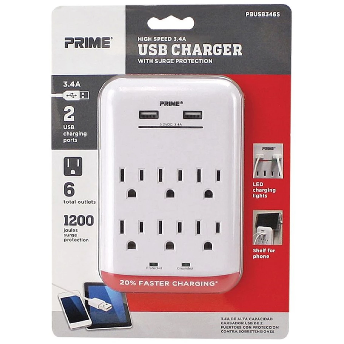 Best Pirce ๐งจ Prime Wire & Cable 6 Outlet 1200 Joule Surge Tap With 2 Port 3.4A USB Charger ๐