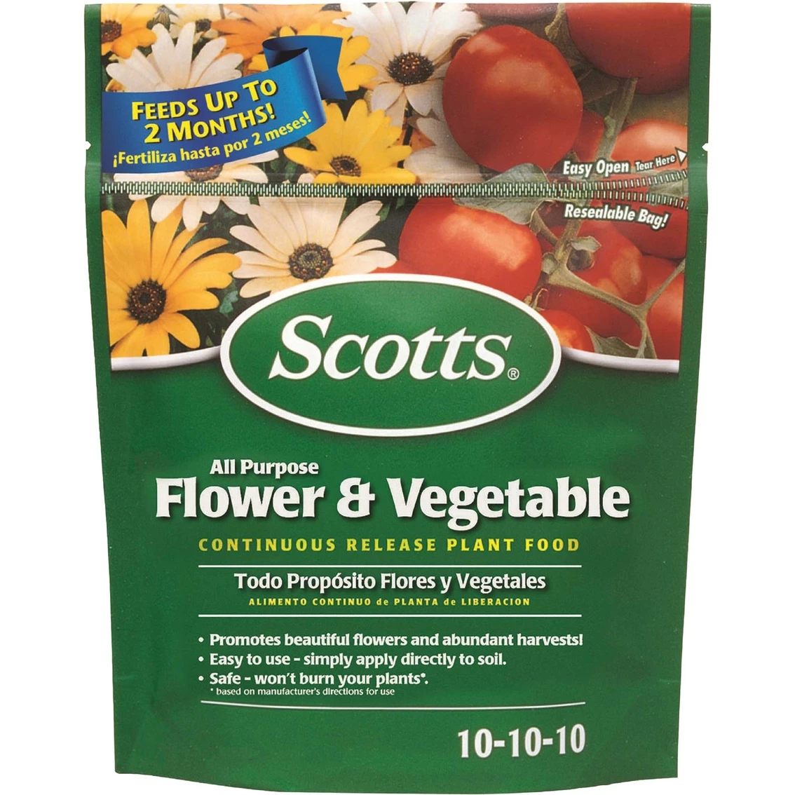 Scotts All Purpose Flower & Vegetable Continuous Release Plant Food promotes beautiful flowers and abundant harvests. Easy to use — simply apply directly to soil. It delivers nourishment to your plants, encouraging vigorous root growth and lush foliage. 3 lb.