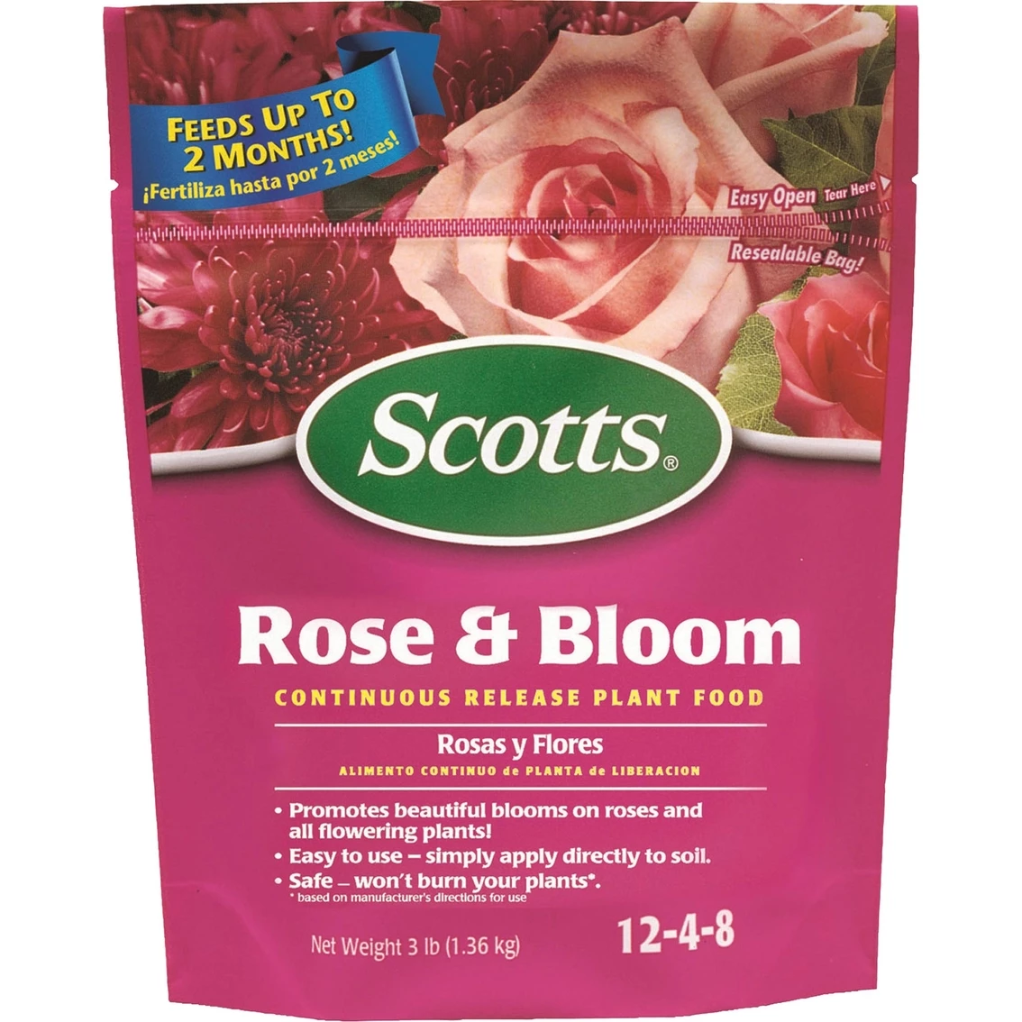 Scotts Rose & Bloom Continuous Release Plant Food promotes beautiful blooms on roses and all flowering plants. Easy to use — simply apply directly to soil. Safe — won’t burn your plants.* Feeds up to 2 months. 3 lb.
