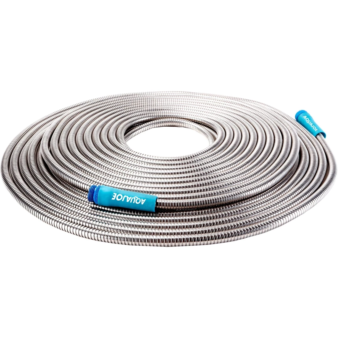 The Stainless Steel Hose That’s As Tough As Nails! Sun Joe’s lightweight stainless steel hose is quite simply the last hose you’ll ever need! Made from high-quality industrial grade 304 stainless steel for a lifetime of reliable use in your yard and garden. Won’t cut, crush or crack – won’t split, kink or get hot in the sun. It’s the one hose that works as hard as you do. A rugged, virtually indestructible and puncture-proof stainless steel outer sheath surrounds a flexible PVC inner core, for maximum performance and durability, and features bend restrictor collars and durable aluminum fittings at each end for unrestricted water flow and secure, leak-proof connections. Lead-free, phthalate-free and BPA-free. Perfect for watering the flowers, washing the truck, rinsing patio furniture or connecting to sprinter or pressure washer. Model: AJSGH.